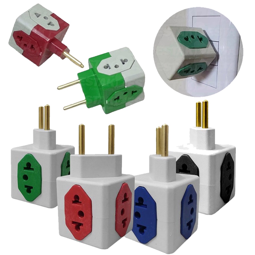 Tomada Pino Benjamim Adaptador T Cubo Colorido 4 saídas 10A