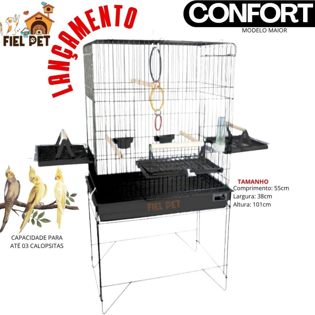 Viveiro Gaiola Calopsita Periquito Papagaios Canário Pássaros Grande Confort Triplex Jel Plast