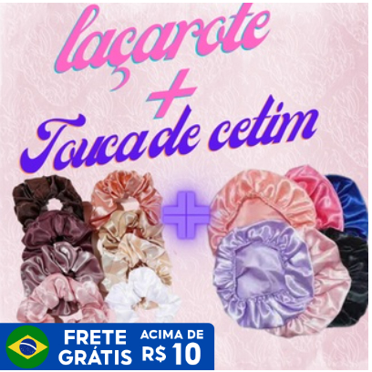 KIT DUPLO 1 touca de cetim + 1 xuxinha de cetim