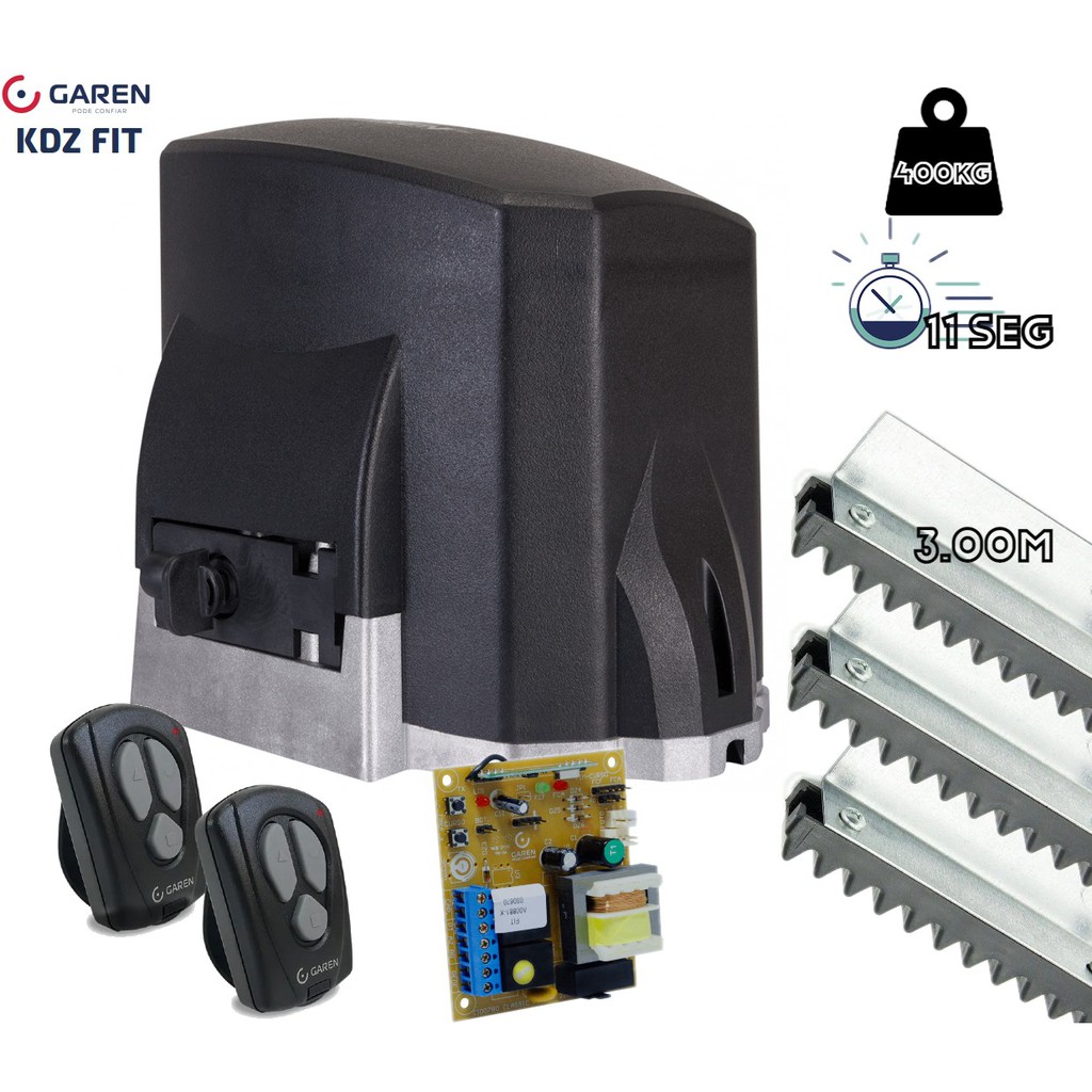 Kit Motor Garen 1/4CV Dz KDZ FIT 2 Controle Portão Eletrônico Deslizante 400Kg Com 3 Metros de Cremalheira