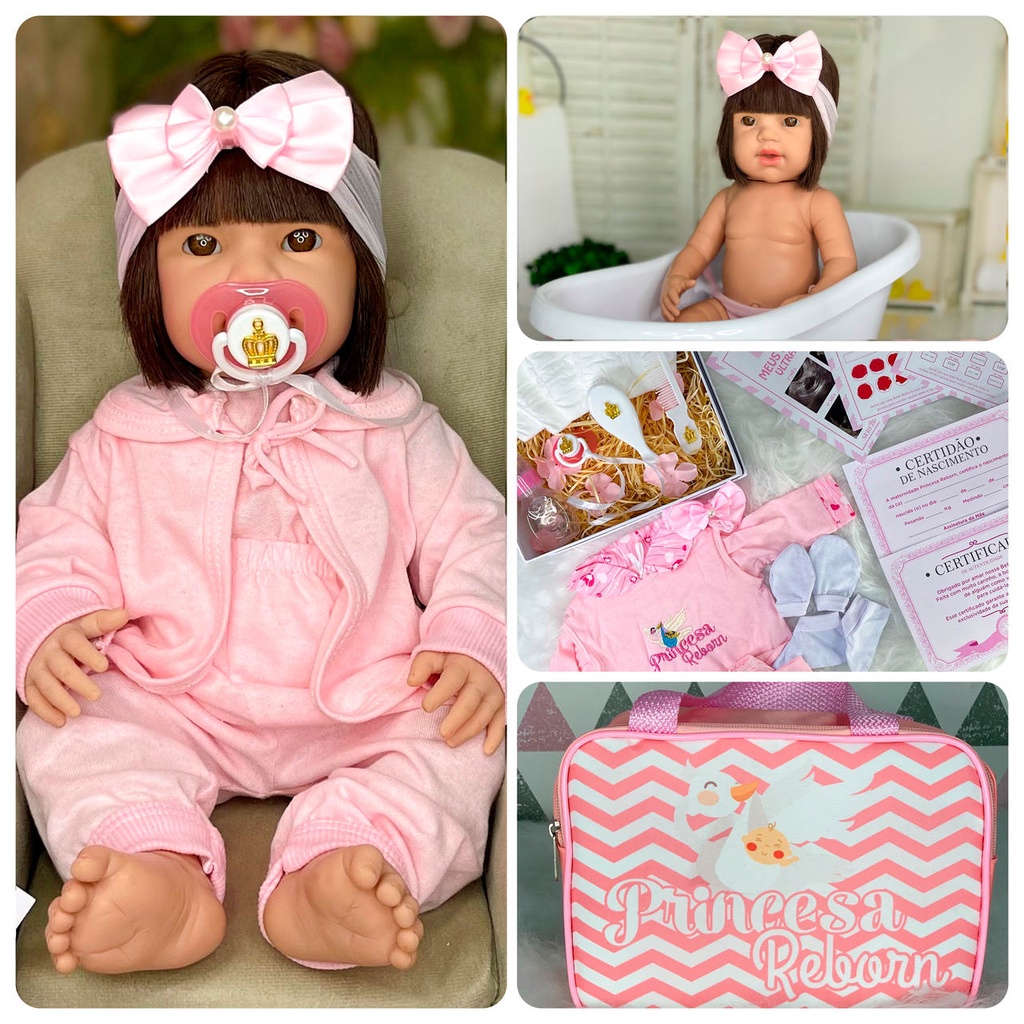 Bebê Reborn 100% Silicone Caixa de Boneca + 23 Itens e Bolsa