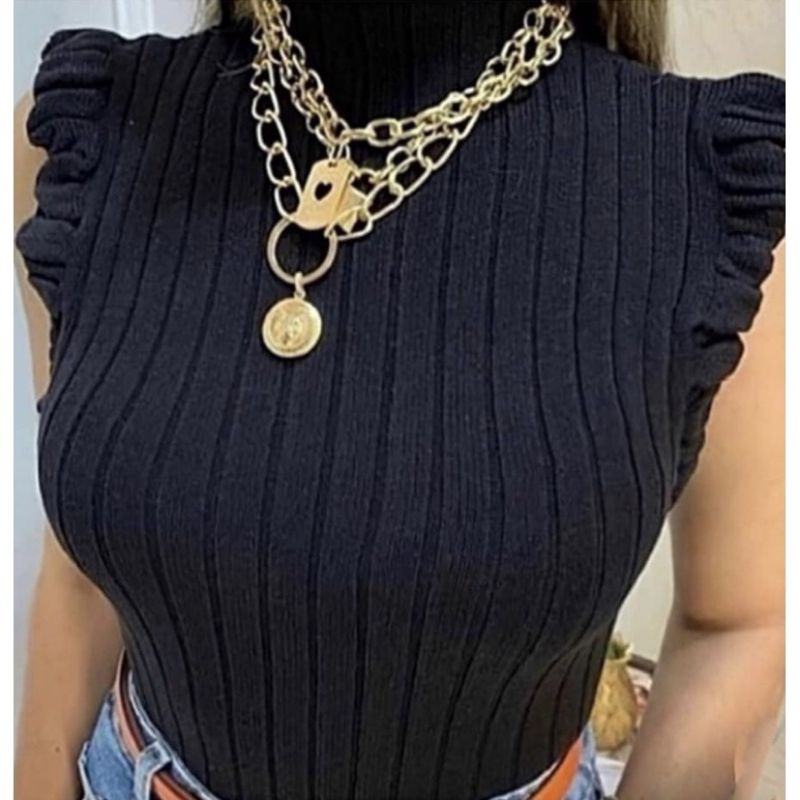 Blusinha Feminina Garrafinha / Gola Alta / Babado / Tricot Modal Canelado / Tricô / Blusa Moda Blogueira
