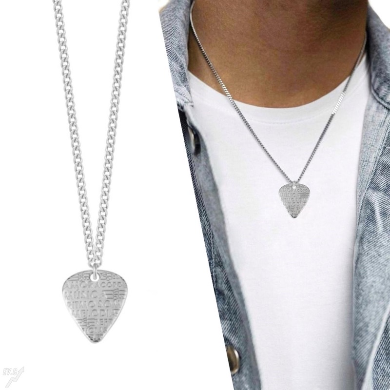 Colar Masculino Corrente Aço Inoxidável Música Palheta Musical Não fica Preto cor Prata Corrente Envio Para todo o Brasil