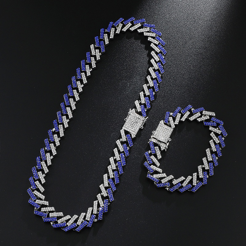 Moda Masculina Colar De Hip Hop Cadeia De Prata Azul Strass Cubano Jóias Dos Homens