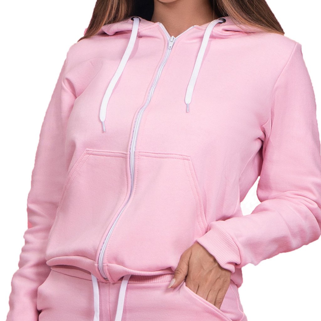 Casaco Feminino Inverno de Moletom Moletinho de Zíper com Capuz e Bolso Agasalho Frio Blusa Frio Ganguru