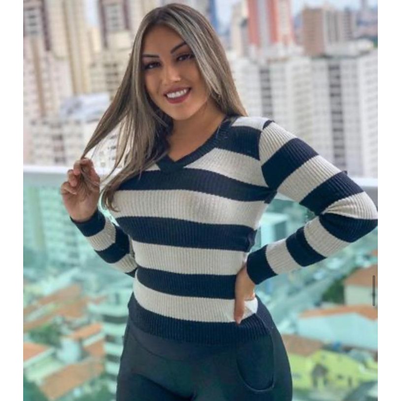 Blusa Feminina Inverno de Frio Trico Tricot Blogueira Manga Longa