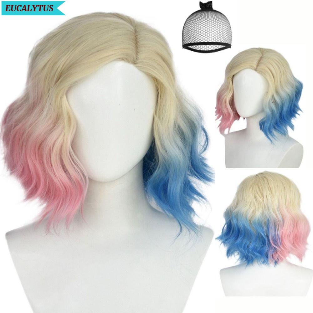 EUCALYTUS Peruca Sintética De Cabelo Curto , De 36cm Cosplay Enid Sinclair Wig , Nova Azul/Rosa/Branco Quarta-Feira Addams Cabeleira Ondulada Feminina