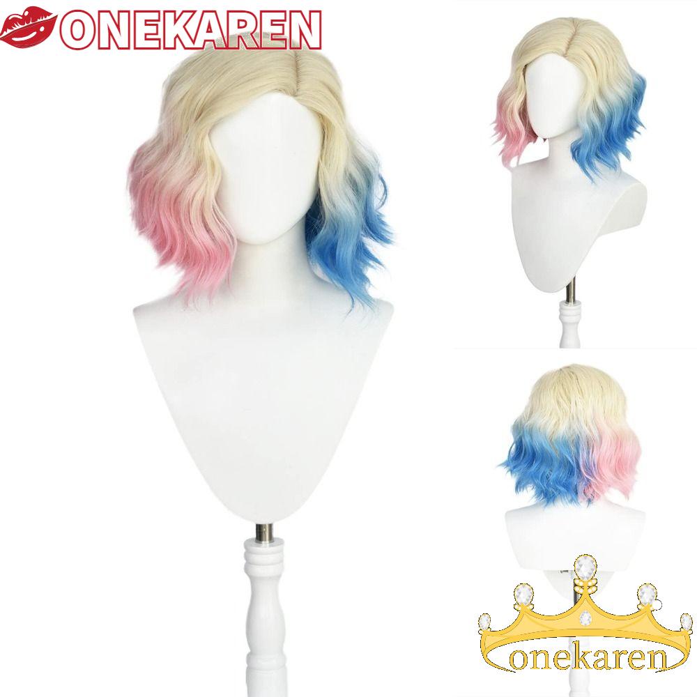 KR Cosplay Cabeleira Sinclair Enid , 36cm Sintética Addams De Quarta-Feira Curta , Azul/Rosa/Branca Ondulada Meninas