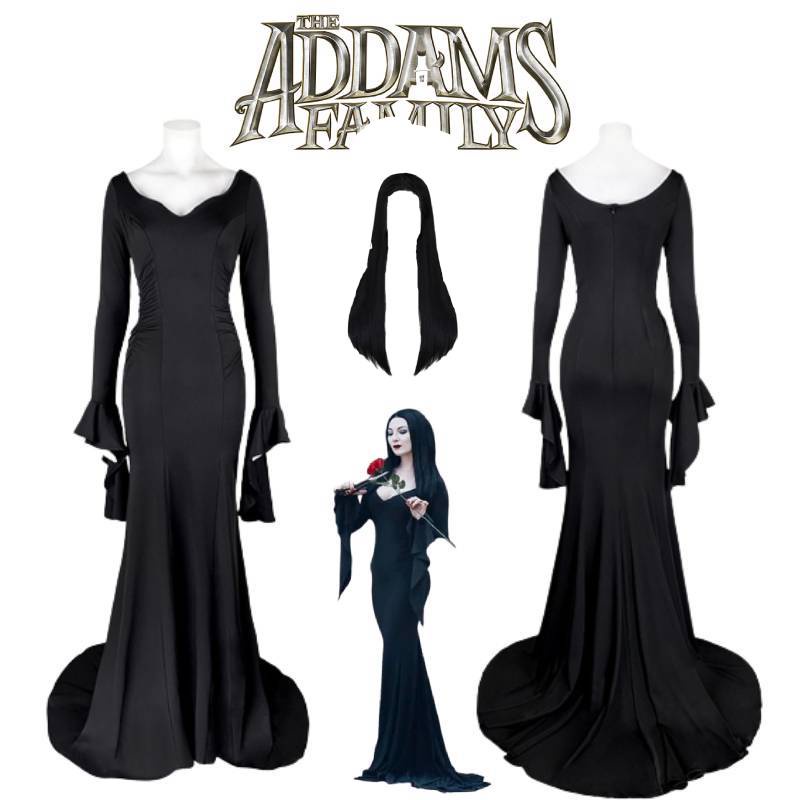 Quarta-Feira A Família Addams Morticia Vestir Vestido Sexy Elegante Preto Cosplay Suit Mulher Presente