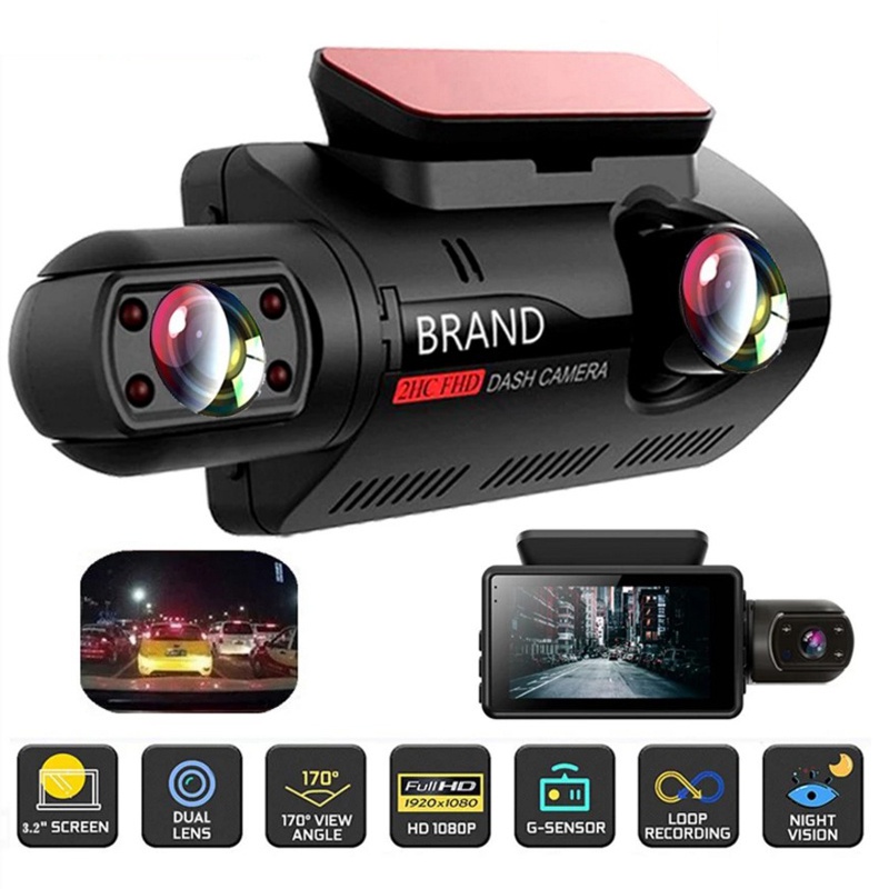 Câmera Nova Dash Cam Dual Record Filmadoras Mini Vídeo 3 Lens 4 Polegada 1080p Cam Visão Noturna Monitoramento de Estacionamento G-sensor DVR Do Carro FHD Dashcam Câmera Gravador 32G TF Card Dash