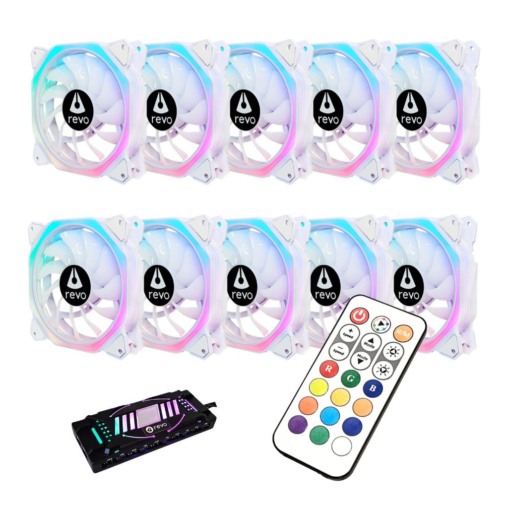 Kit 3, 5, 6, 7 e 10 Fans Ventoinha Cooler Branca ARGB RGB 120mm Gabinete Gamer Stellar Frost Revo