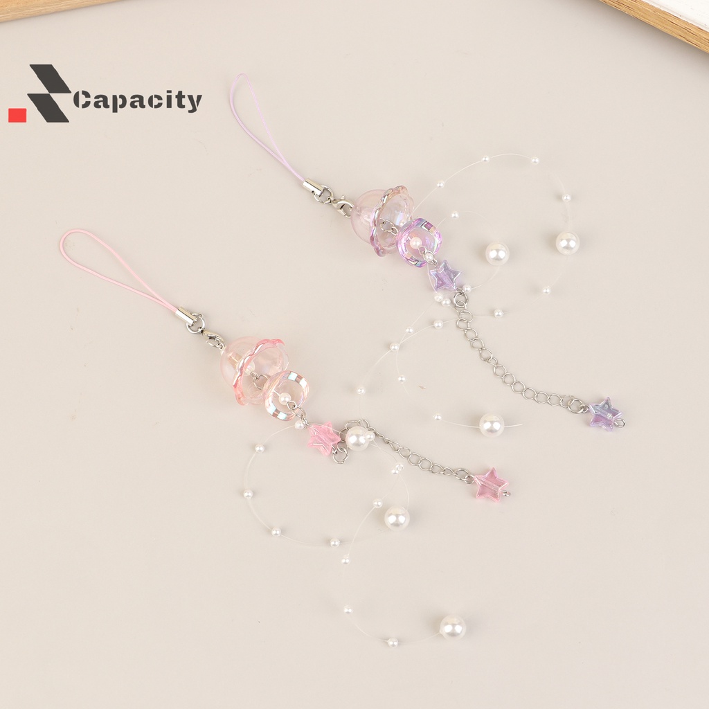 Capacidade Lírio Do Vale Água-Viva Corrente De Telefone Pérola sel Cordão Móvel Sweet Girly Phone Strap Y2K Chaveiros Nice
