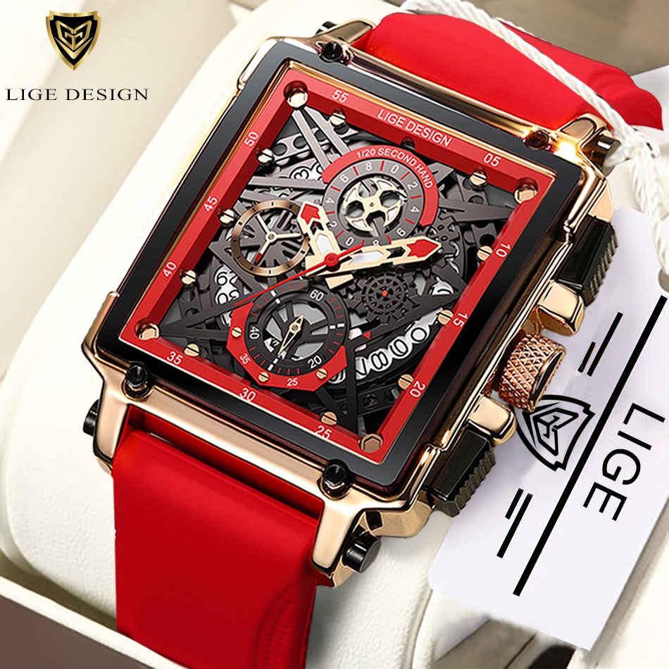 LIGE Relógio de negócios ao ar livre original masculino esportes à prova dwaterproof água luminosa relógio de quartzo silicone água cronógrafo relógios + caixa