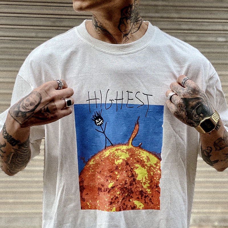 Travis Scott Cactus Jack Sun Stickman Manga Curta INS Europeu E Americano Alta Rua Camiseta Gola Redonda Solta