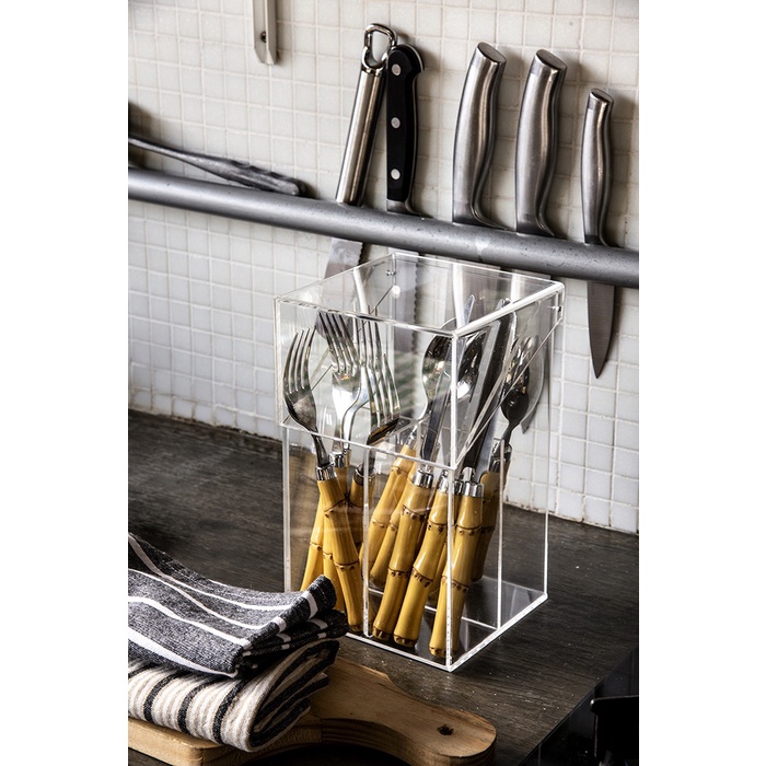 Porta Frios Ou Porta Treco Com 3 Divisórias Em Acrílico Com Tampa Empilhável