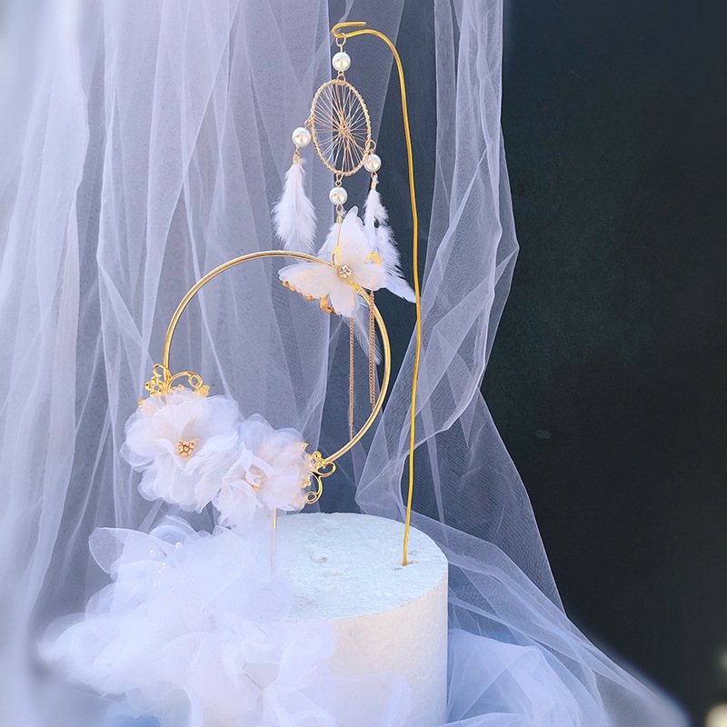 Bonito Cher Pouco Princesa Decoração Do Bolo Ornamento Sonho Malha Feliz Aniversário Chapéu Top Asas Anjo Da Menina 1st Suprimentos De Cozimento De