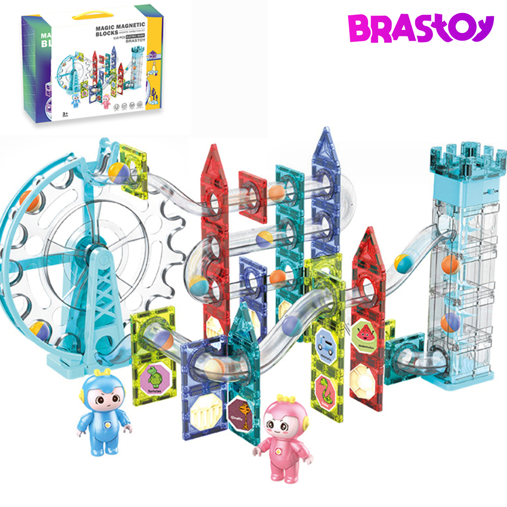 Brastoy Blocos Montar Construção Magnético de Ladrilhos Com Roda Gigante e Elevador Brinquedos STEM Infantil 118 Peças Original