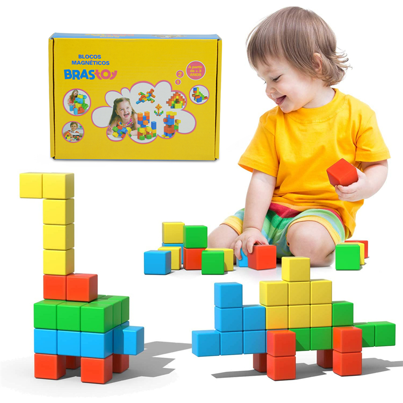 Brastoy Blocos De Montar Magnéticos Cubos Construção Brinquedo Educativo Infantil 48 Peças Original