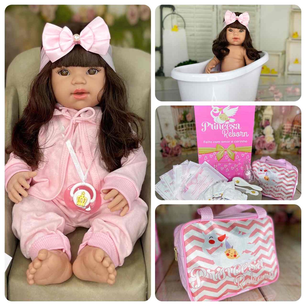Bebê Reborn 100% Silicone Caixa de Boneca + 23 Itens e Bolsa