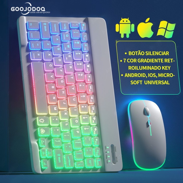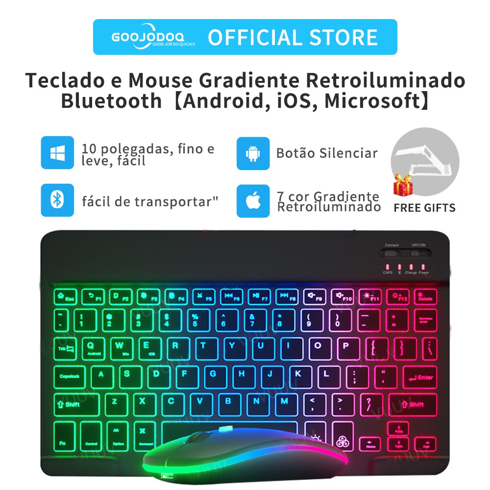GOOJODOQ Teclado E Mouse Bluetooth Sem Fio Com Luz LED Para Tablet Android