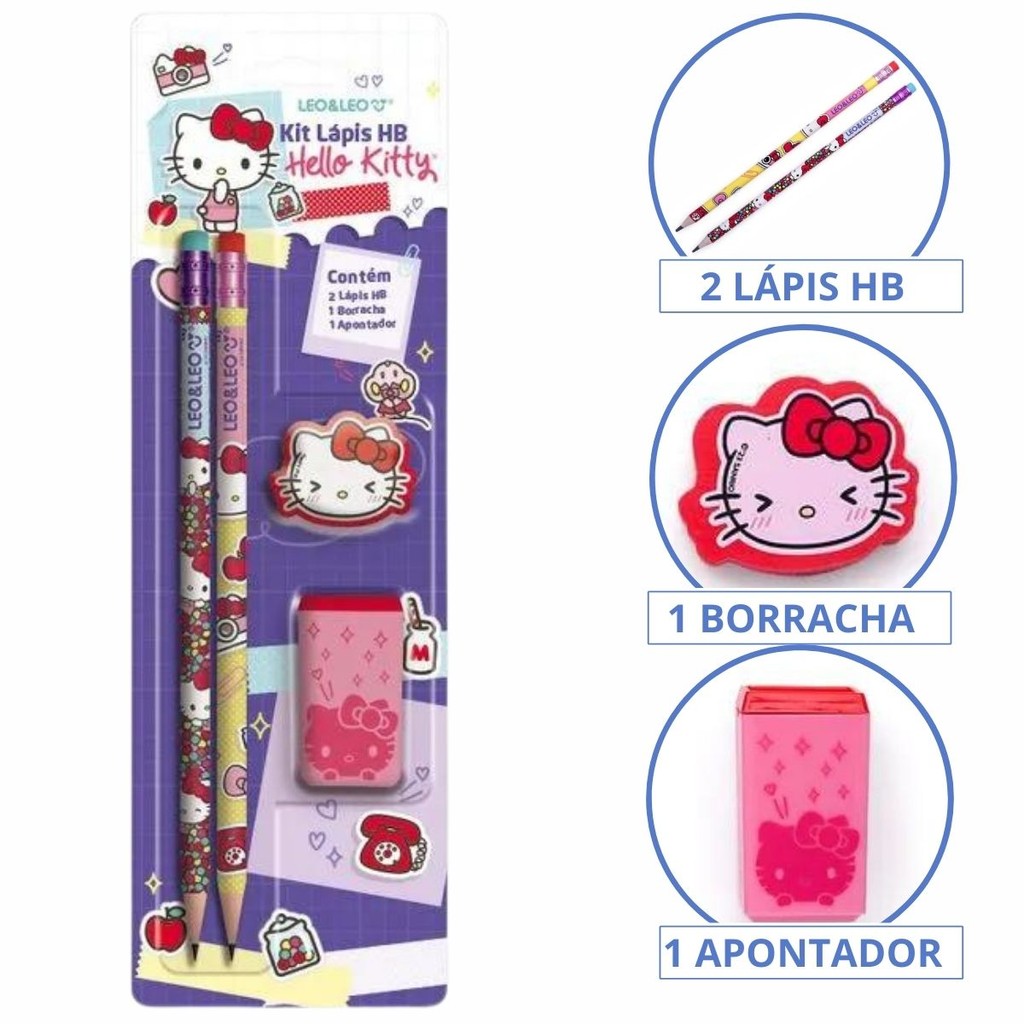 Kit Escolar 4 Peças Lápis Apontador Borracha Volta as Aulas
