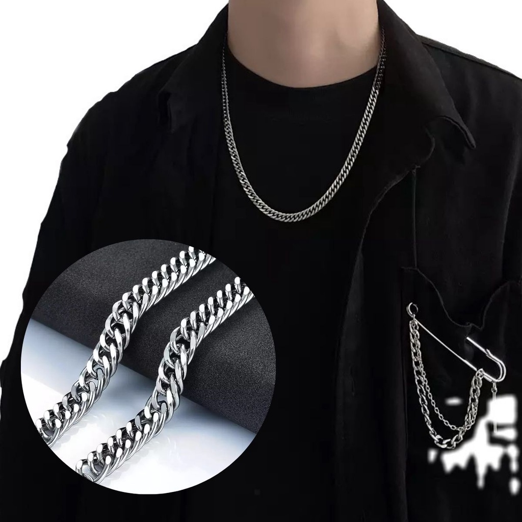 Corrente Masculina Colar Elo Duplo Aço Inox Prata