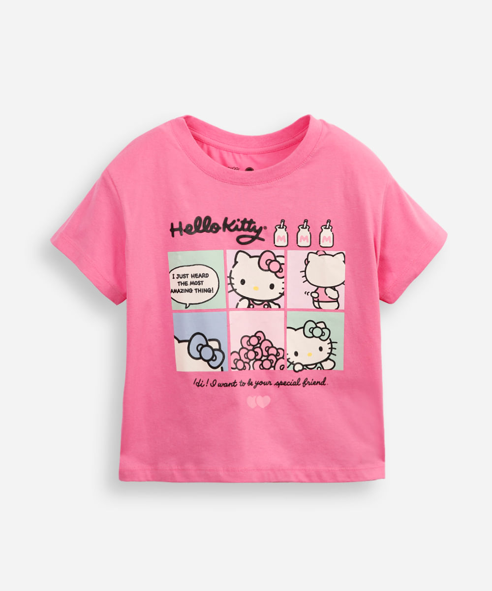 camiseta de algodão manga curta hello kitty rosa