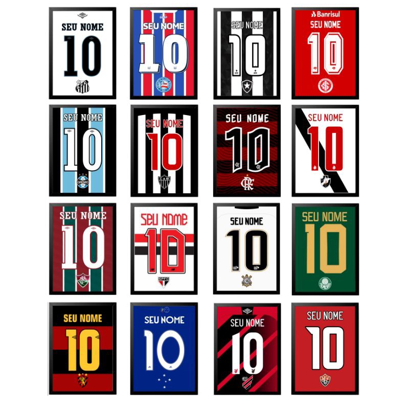 Quadros Placas Times de Futebol Clubes Personalizado com Seu Nome Número A3 A4 MDF Decoração Quarto Futebol Sala Bar