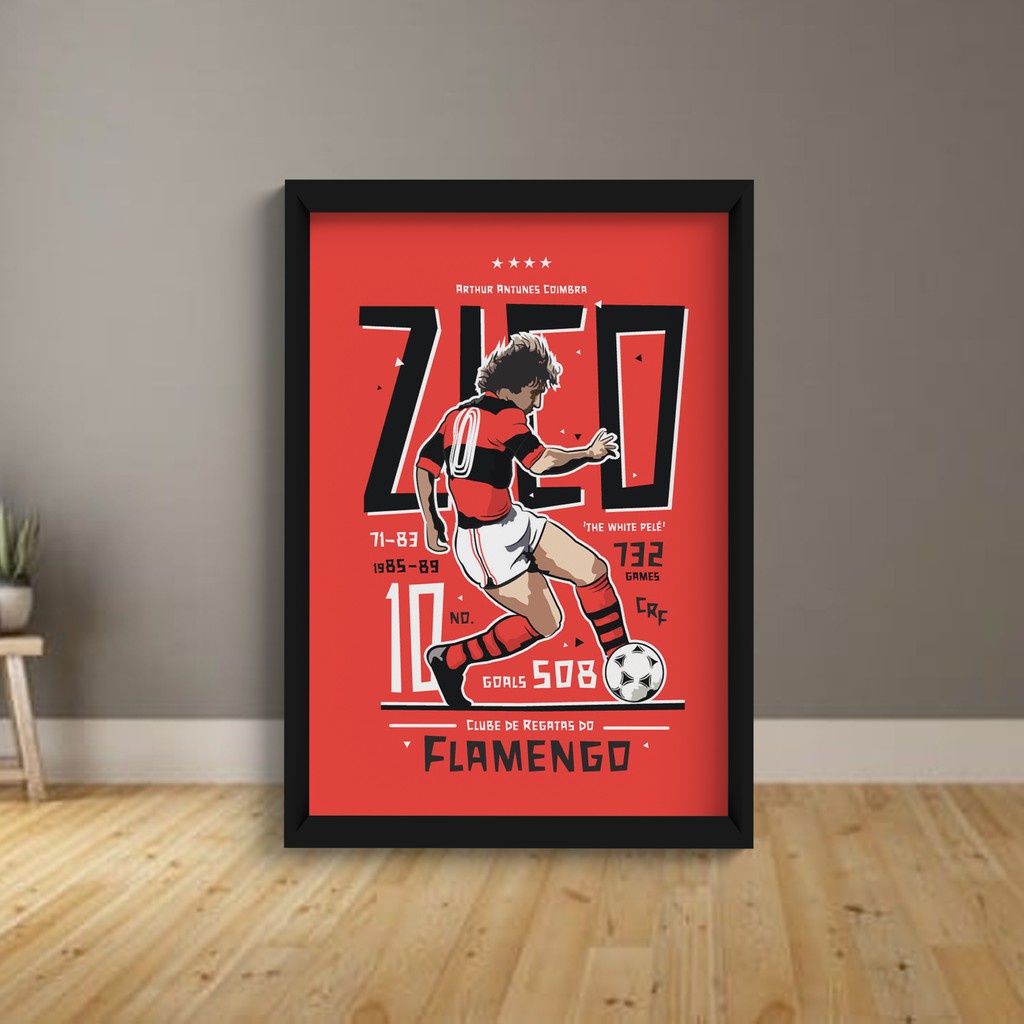 Quadro Decorativo Futebol Zico no Flamengo C/ Moldura e Vidro