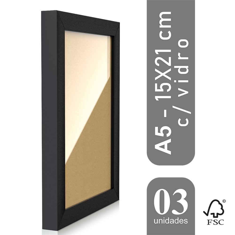 Kit 3 Moldura Quadro A5 15x21 Com Vidro Para Pôster Fotografia Certificado Caixa Alta