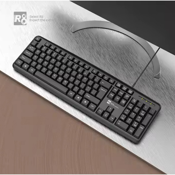Teclado Office R8 com Fio Usb Abnt2 Silencioso para computador notebook Home Office Escola Trabalho