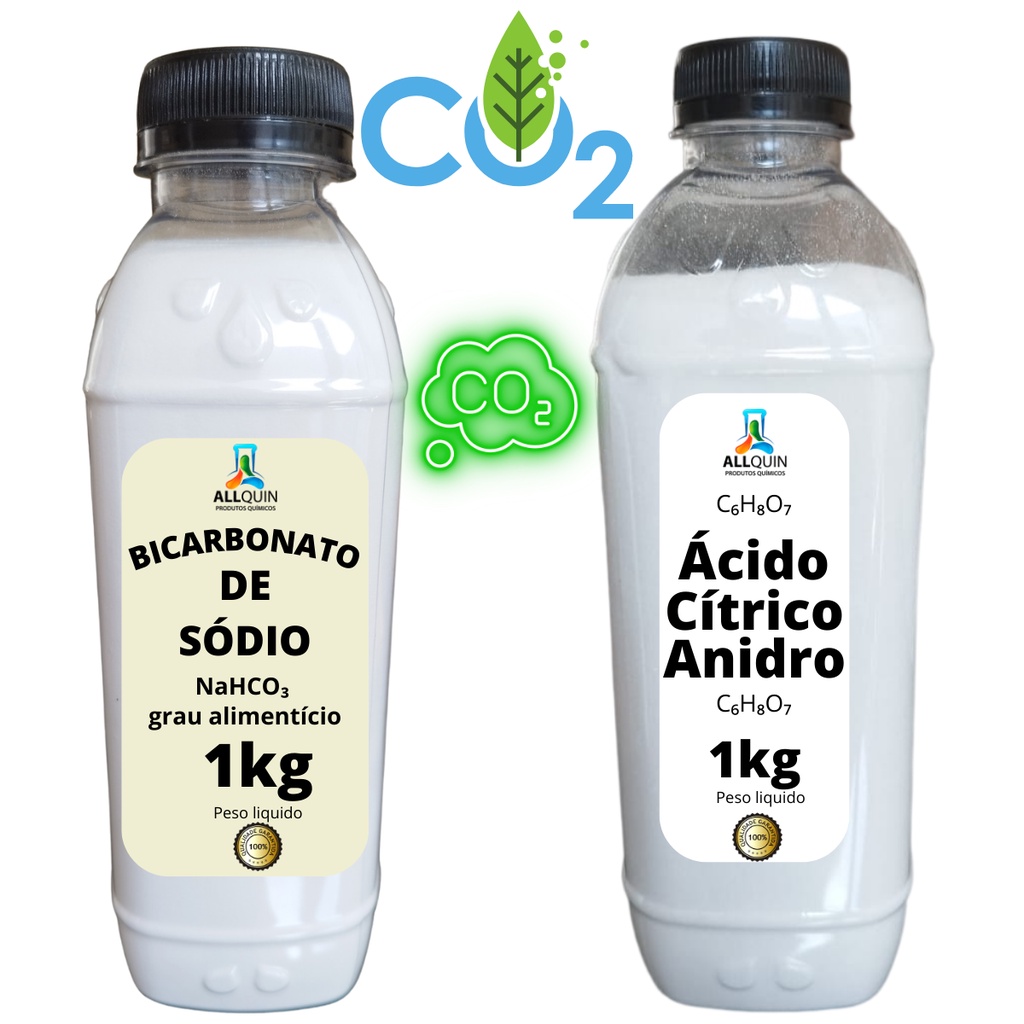 Kit cO² Caseiro - Ácido Cítrico Alimentício 1kg + Bicarbonato de Sódio 1kg