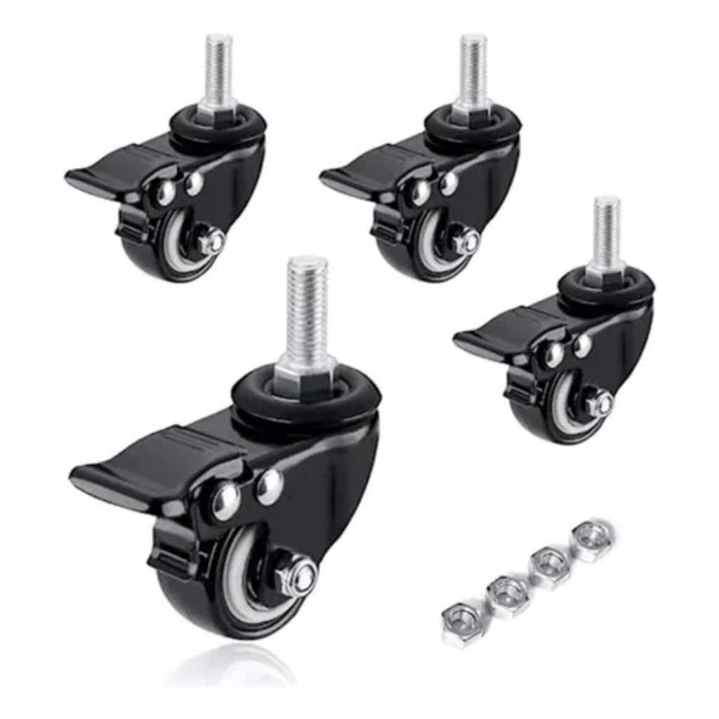 Kit 4 Rodinhas para Móveis Pesados Rodízio Giratório Rodas Giratórias Borracha Com Trava Freio 400kg