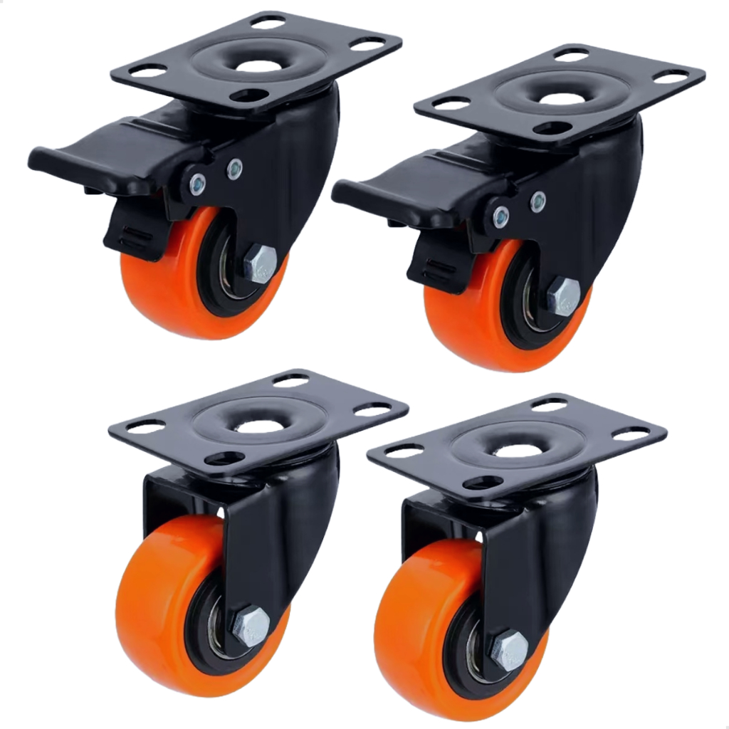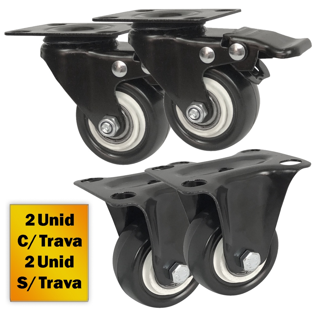 Kit 4 Rodinhas para Móveis Pesados Rodízio Giratório Rodas Giratórias Borracha Com Trava Freio 50mm 400kg