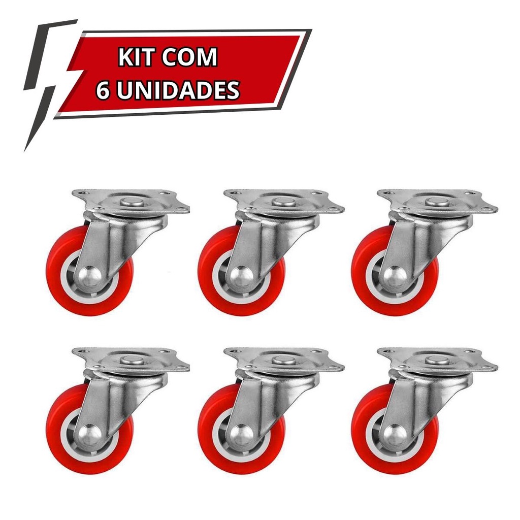 Kit 6 Rodas Rodinhas Giratórias Borracha Forte Peso 400kg