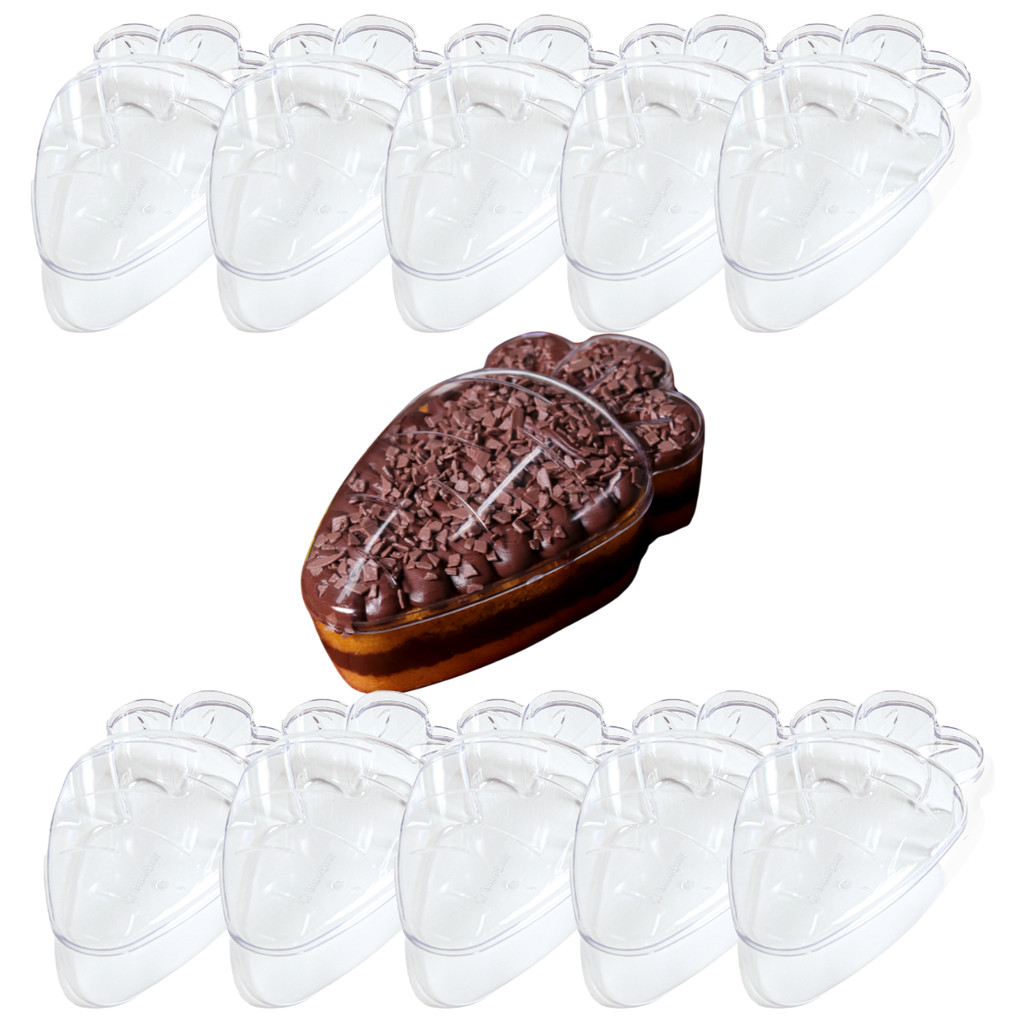 Kit 10 Cake Box Cenoura Páscoa 750ml com Tampa Alta Transparente BlueStar Bolo Doces e Sobremesa