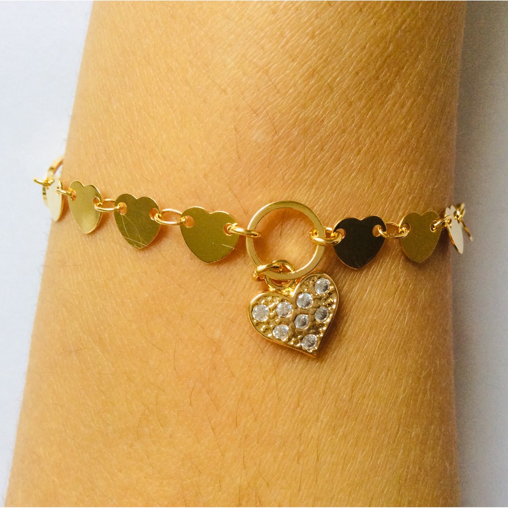 Pulseira Orox Folheada a Ouro 18k Coração Com Pedras de Zircônia 20 cm