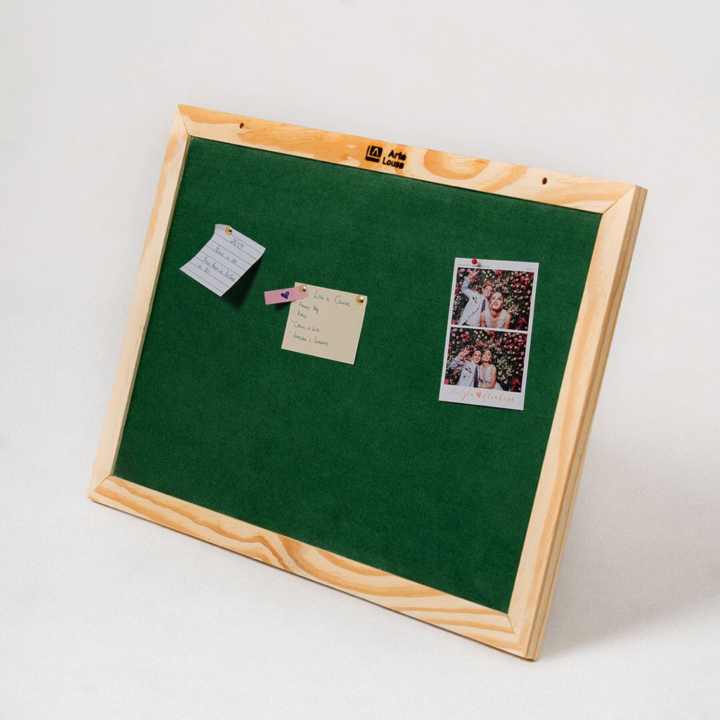 Quadro de Avisos com Alfinetes Feltro Verde 70x50 – Moldura em Madeira - Fotos Mural Lembrete Recados