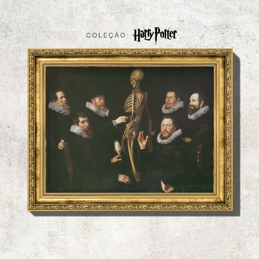 Quadro - A Lição de Anatomia do Doutor Sebastiaen Egbertsz - Coleção Harry Potter - 46x36cm - Moldura Dourada Trabalhada em Madeira com Vidro