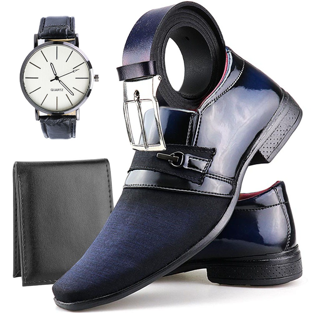 Kit Sapato Masculino Social Elegante Confortável com Relógio Carteira e Cinto Envio Imediato