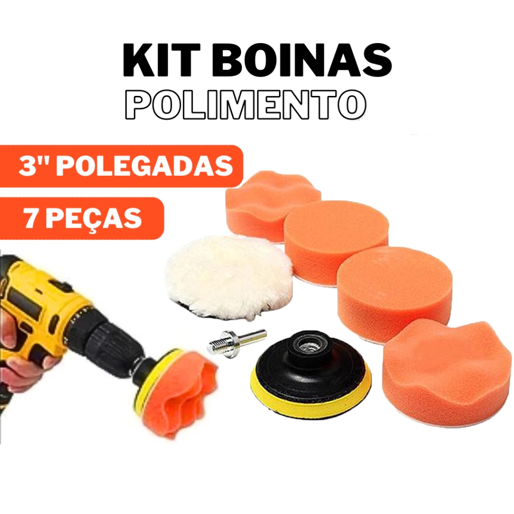 Kit Boina Automotiva Polimento 3 Pol 7 Peças Espuma e Lã Com Suporte Para Furadeira e Parafusadeira