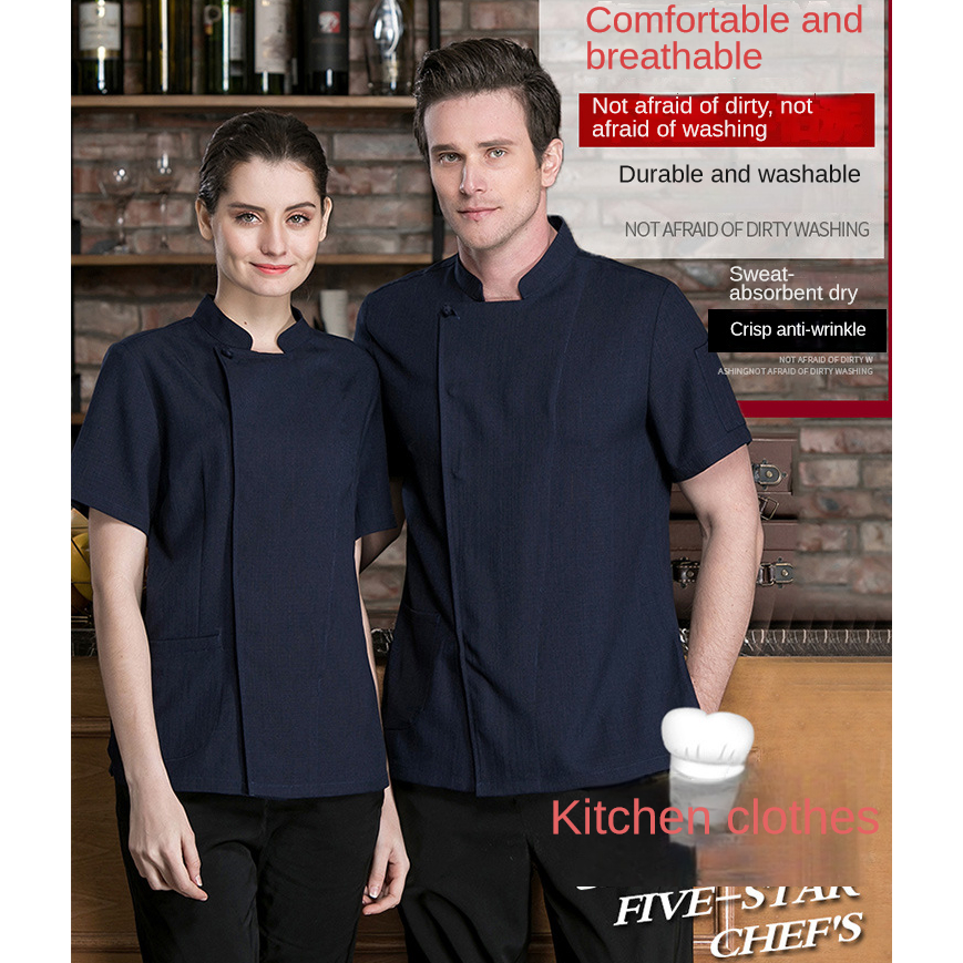 Ready Stock chef de trabalho uniforme de trabalho uniforme de trabalho unisexo de manga curta restaurante de comida ocidental cozinha de trabalho uniforme de cozinheiro uniforme de cozinheiro casaco de seção fina respirável roupas de cozinheiro absorvente