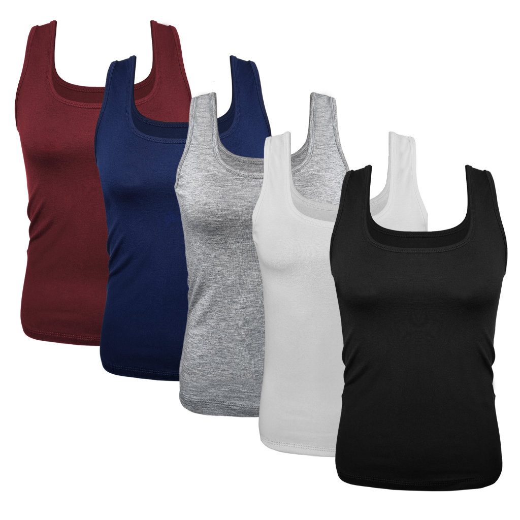KIT 5 Regatas Femininas de Alça Larga Alça Grossa Básica Viscolycra