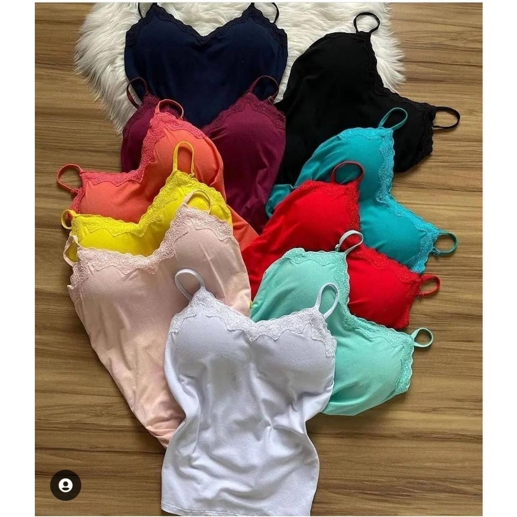 KIT 5 Regatinha de alcinha regata Feminina com Bojo Renda e alça regulável