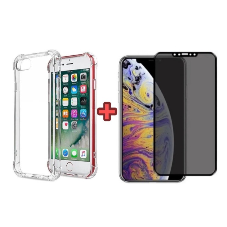 Kit 2 em 1 Película Vidro Temperado 3D + Capa Capinha Transparente Anti Shock Para IPhone Apple 6 7/8 Plus Xs Xr Max 11 Pro 12 13 14 15Pro 15 ProMax