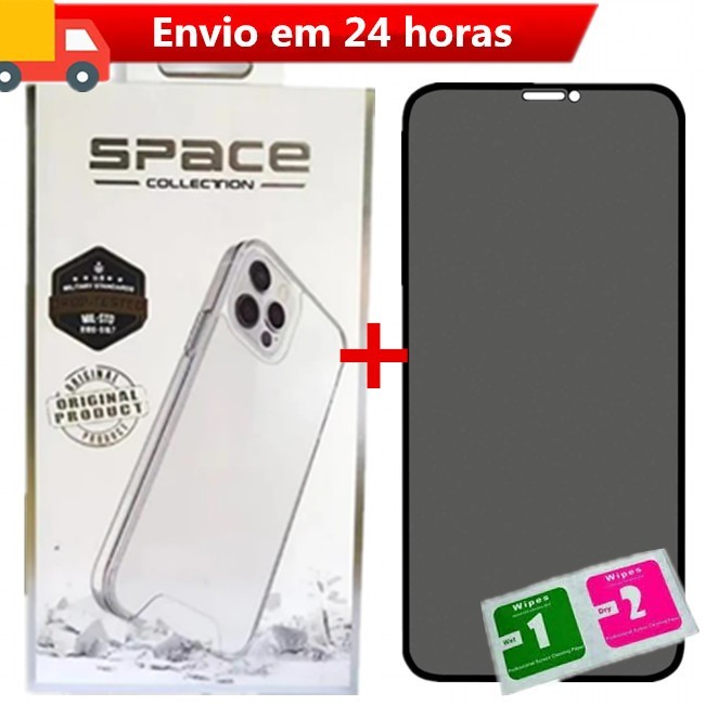 Kit Capa Capinha Space Anti Impacto + Película de vidro 3D Privativa Para IPhone 6 7 8 Plus XR 11 12 13 14 15 15Pro Max