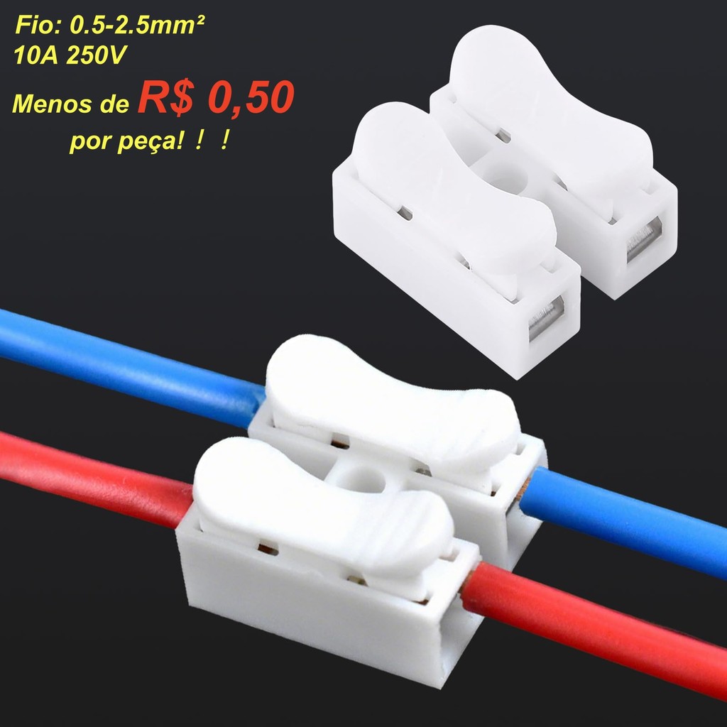 Kit 50pcs Conector de Pressão CH-2 2 Vias 2 em 2 Saída para Fios 0.5-2.5mm² Emenda Rápida sem Solda