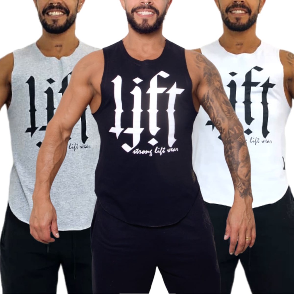 Regata Masculina Cavada Longline Fitness Academia Estampa Strong Lift Dia dos Pais Namorado.
