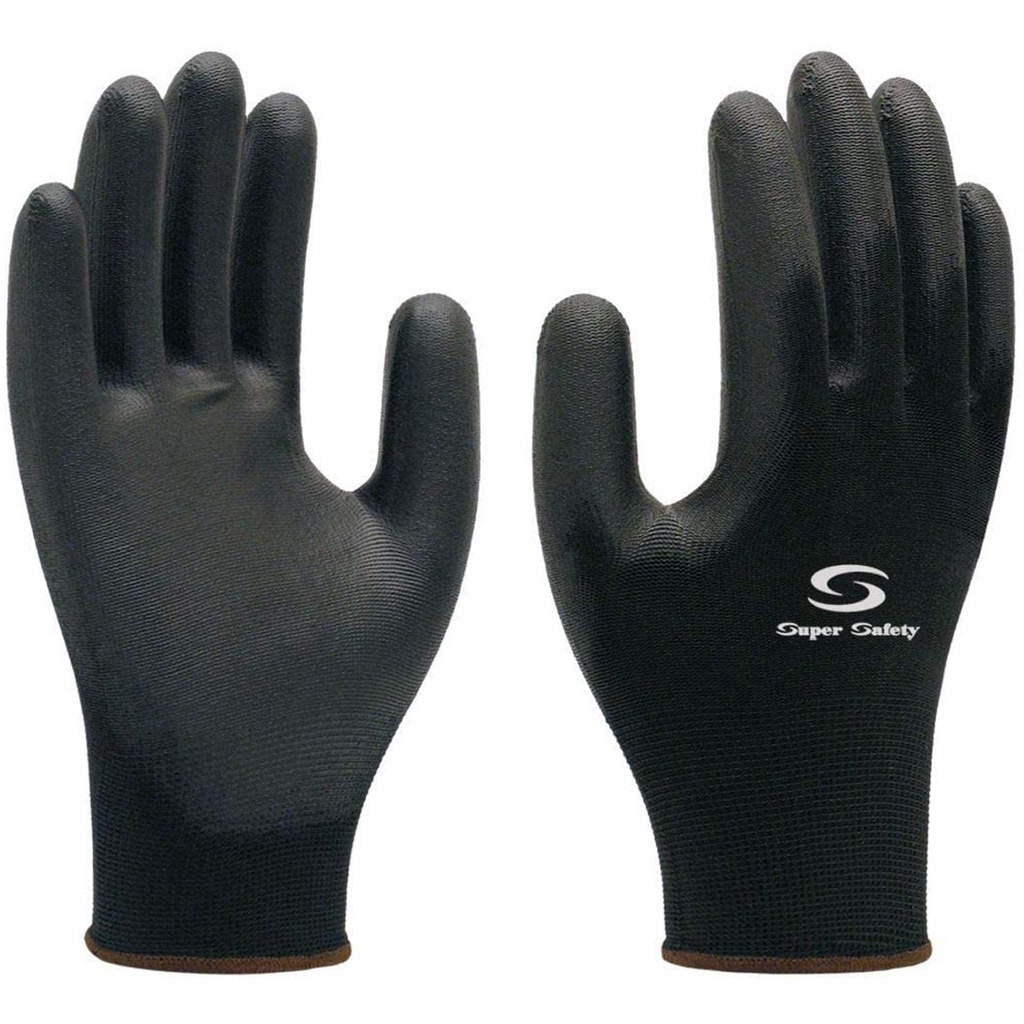 Kit 10 Pares Luva de Segurança Nylon EPI Multitato SS1003 1003 Preta Mecanico Multiuso Com Banho PU Pedreiro Oficina Ca Super Safety