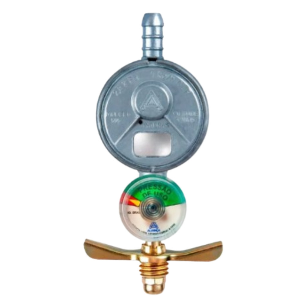 Registro Regulador de Gás De Cozinha Doméstico Blister 506/01 B-BTM Aliança Com Manômetro Pressão 2,8Kg Botijão GLP/13kg